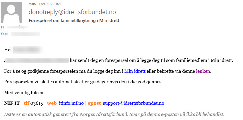 Der går det først ut en mail til familiemedlemmet som må bekrefte at dette er ok.